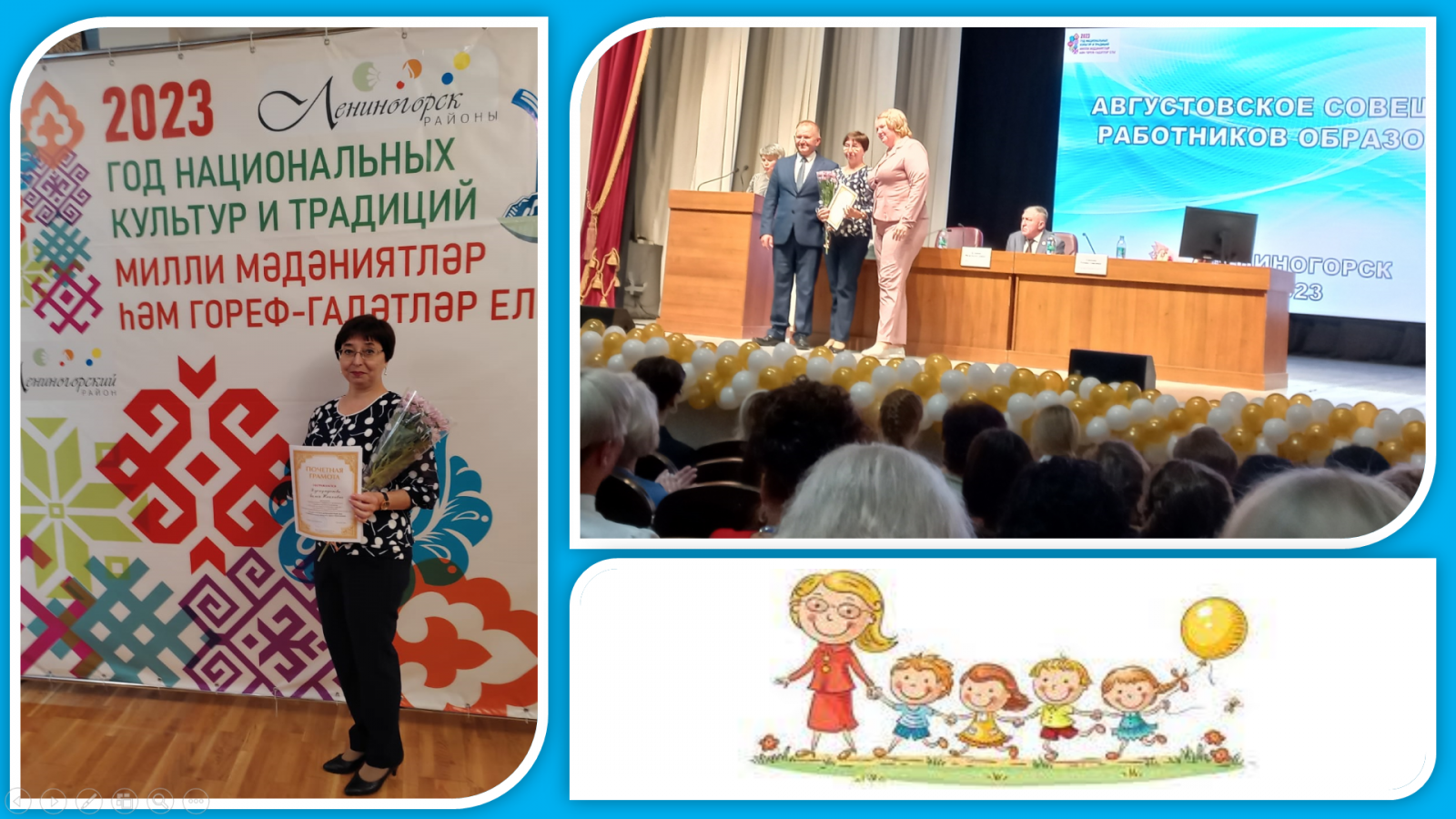 На муниципальной августовской конференции работников образования 2023 года «Наставничество в образовании: современная теория и инновационная практика» прошла церемония награждения лучших педагогических работников Лениногорского муниципального района. Воспитатель нашего детского сада Хуснутдинова Лилия Наильевна награждена Почетной грамотой Министерство просвещения Российской Федерации за многолетний добросовестный труд и значительные заслуги в сфере образования. Мы гордимся нашими педагогами и желаем дальнейших побед!