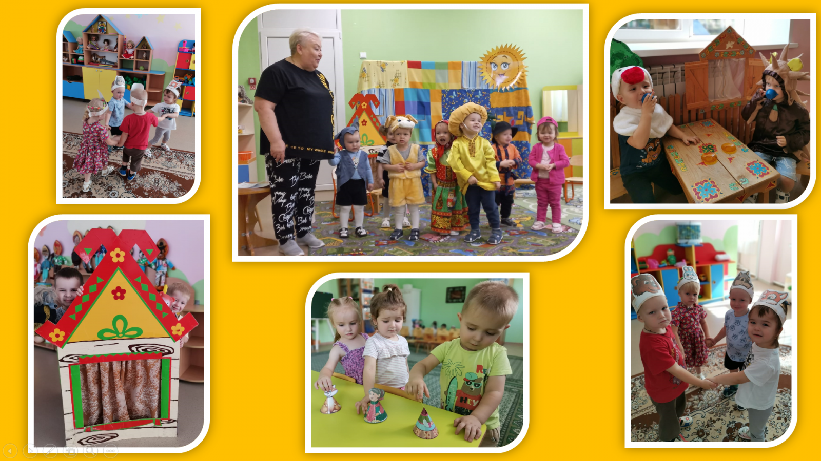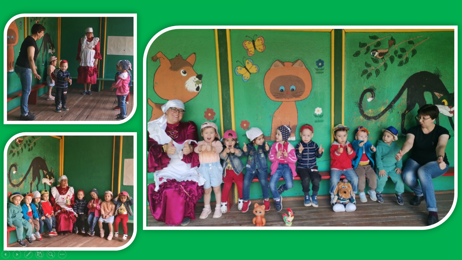 С детьми 1 младшей группы №2 прошло музыкальное развлечение «На бабушкином дворе». Педагогами Хуснутдиновой Л.Н. и Шараповой А. М. было организовано развлечение с целью вызвать у детей положительный эмоциональный отклик, закрепить умение у детей отгадывать загадки, вспомнить знакомые песни, стихи, потешки. В ходе развлечения дети пришли к бабушке в гости. Наша бабушка как всегда вся в делах, ведь у нее столько хлопот. Дети отгадывая загадки узнали какие домашние животные есть во дворе у бабушка. Бабушке дети рассказали стишки-потешки про петушка, спели песню «Рыженькая кошечка», «Два весёлых гуся», все вместе поиграли в игру «Собачка Жучка». Бабушка поблагодарила детей за помощь. Развлечение прошло весело и радостно!