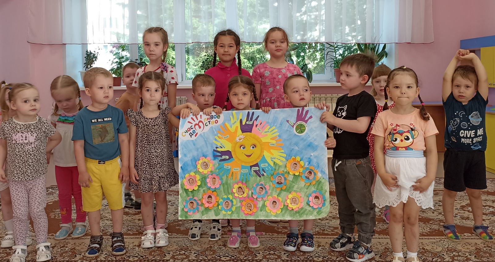 1 июня во всех странах отмечается Международный день защиты детей. Это не только один из самых радостных праздников для детворы, но и напоминание взрослым о том, что дети нуждаются в их постоянной защите и заботе, и что взрослые несут ответственность за них. 1 июня и наш детский сад отметил этот светлый, красочный праздник. Мероприятие прошло под названием «Счастливое детство». Педагоги Герасимова Н.В. и Голунова Н.В. с ребятами второй младшей группы сделали коллективную аппликацию, посвященную этому дню. В центре будущей композиции разместили веселое, яркое солнышко, вокруг которого появились цветные детские ладошки, символизируя доброту и дружбу, ведь дети должны жить в мире и спокойствии. А дальше появились самые главные персонажи этой работы - НАШИ ДЕТИ! Как радостно становится на душе, когда мы видим улыбающихся детей, которые подобно цветам, раскрывающим свои бутоны. Хочется пожелать нашим детям, чтобы их глазки сияли радостью и счастьем, как в добрых сказках! Чтобы в их жизни было много улыбок, много света, много тепла! Пусть небо над головой всегда будет мирным, а каждый новый день - добрым и интересным.