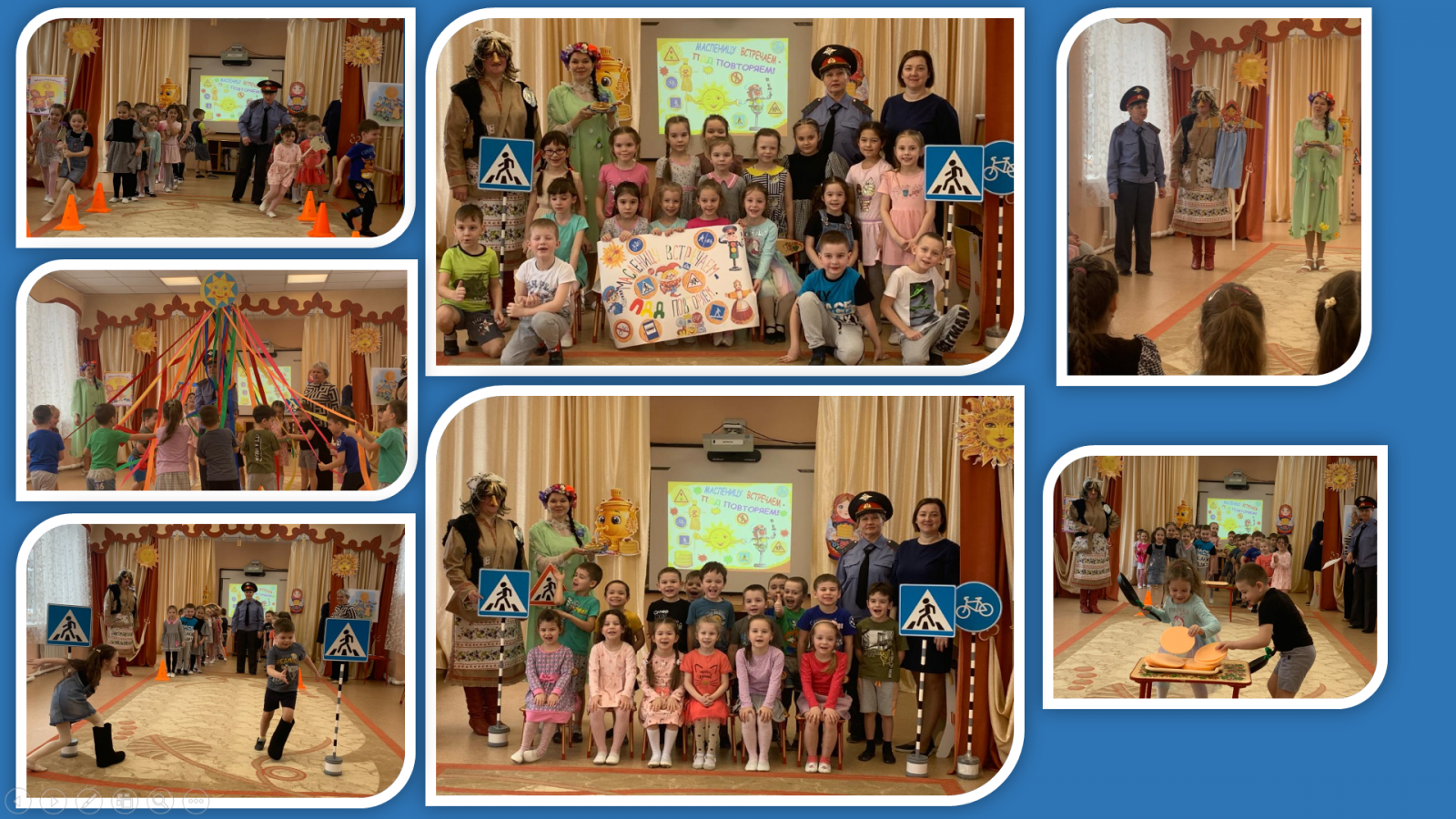 С чего начинается весна? Конечно с проводов зимы. В нашем детском саду празднование Масленицы стало хорошей и доброй традицией. Масленица - самый веселый, шумный, любимый народный праздник. В масленичную неделю люди провожают зиму и встречают весну. Символами этого праздника считаются солнце, блины и чучело Масленицы. 28 февраля дети стали участниками проводов Масленицы. Но проводы зимы для детей старшего дошкольного возраста в этом году были необычные – БЕЗОПАСНЫЕ! Организаторами такой «Безопасной Масленицы» стали инструктор по физической культуре Голунова Н.В. и музыкальный руководитель Романова Е.А. Прошедший в детском саду, праздник показал, что воспитанники знают, не только что означает и откуда берется начало этот обычай, но и наши ребята хорошо знают правила дорожного движения, называют и понимают значение сигналов светофора, показывают и объясняют значения знаков дорожного движения. Надеемся, что проведенная «Безопасная Масленица» будет способствовать сознательному формированию у детей основ безопасного поведения и помогут предостеречь от опасных ситуаций на дорогах наших воспитанников!