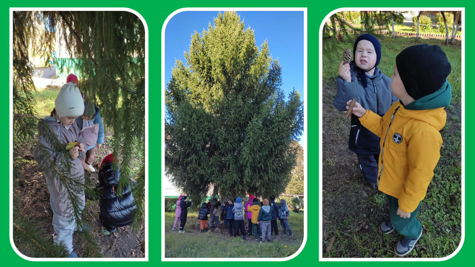 Дети старшей группы №2, воспитатель Хуснутдинова Л. Н. во время прогулки по территории детского сада продолжили знакомство с хвойными деревьями. Учились различать ель, сосну и лиственницу. Наблюдения во время прогулки развивает познавательный интерес к исследовательской деятельности, умение находить и открывать для себя что-то новое, интересное и беречь природу.