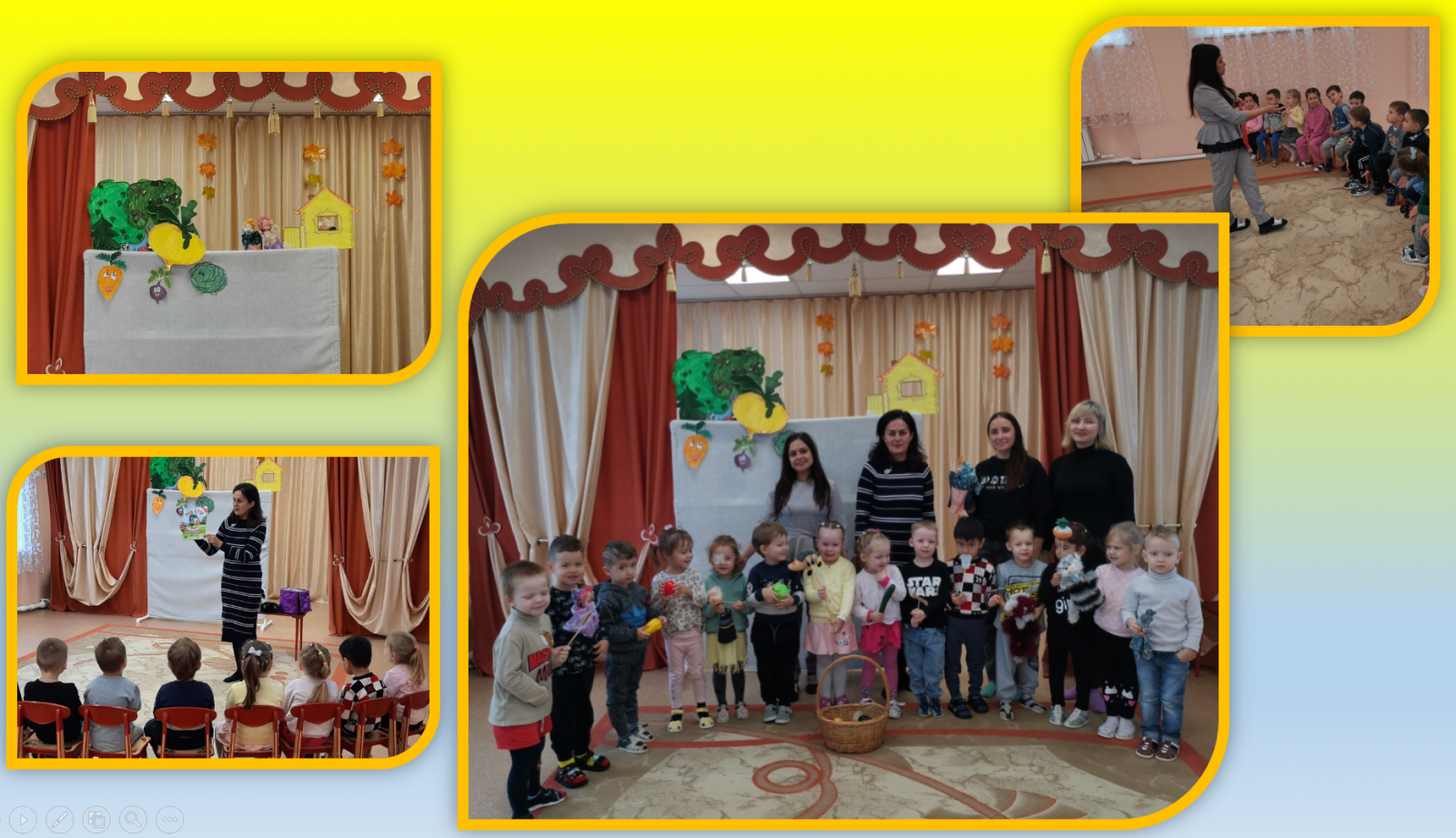 Театр является одной из самых ярких, красочных и доступных восприятию ребенка сфер искусства. Он доставляет детям радость, развивает воображение и фантазию, способствует творческому развитию ребенка и формированию базиса его личной культуры. 27 сентября у нас в гостях была городская детская библиотека имени Гагарина. Нашим воспитанникам была предоставлена возможность не только посмотреть, ни и поучаствовать в кукольном театре «Огородные истории». С детства знакомая всеми сказка «Репка» на новый лад, была представлена детям в форме кукольного театра. А началось все с отгадывания загадок любопытной вороны, а после дедушку и бабушку пришедших посмотреть выросший урожай напугал ёж. Ну и конечно же не обошлось и без внучки, которая объяснила Мурке и Жучке, что можно вырастить в огороде. Кукольное представление захватило внимание дошкольников, они вместе проживали приключения с главными персонажами. Активно поддерживали их и сопереживали. От имени детского сада выражаем благодарность сотрудникам городской детской библиотеки имени Гагарина, за захватывающую «Огородную историю», до новых встреч!
