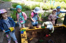 13 июня 2018 г. дети первой младшей группы № 2 (воспитатель Хуснутдинова Л.Н.) знакомились со свойствами песка, проводили эксперименты с песком и водой. Дети узнали, чем различается сухой песок от мокрого (липкий, сыпучий), как можно сделать песок мокрым и что можно делать из мокрого и сухого песка. Эксперименты удались, дети были довольны.