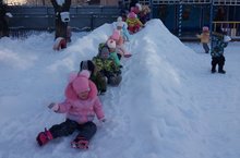 Вот какую замечательную горку построили и залили родители 2 младшей группы вместе с воспитателями. Теперь дети могут радоваться, получать заряд бодрости и весело проводить время на прогулке.