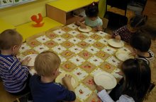 Сегодня, 14.11. 2017 г. на занятие по кружку (1 младшая гр. № 2, воспитатель Хуснутдинова Л.Н.) наши дети знакомились с птицами, которые улетели в теплые края. Мы рассматривали плакат с перелетными птицами, узнали, как зовут птиц (гуси, лебеди, ласточки и др.), а также, какие песни поют эти птицы. Дети с удовольствием играли в игру «Птички», а потом на тарелочках с манной крупой делали пальчиками следы птиц. Занятие детям очень понравилось.