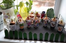 с большим интересом посадили «витаминную, луковую» сказку «Репка». На протяжении двух недель, дети ухаживали за луком, поливали и наблюдали, как быстро растут перышки лука. Сравнивали, в каком стаканчике лук растет быстрее и пышнее: в земле или в стаканчике с водой. Отмечали, как быстро отрастают корни лука и их хорошо видно в стаканчиках, как с землей, так и с водой.