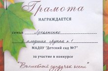С 26 09 по 30.09 в детском саду проходил конкурс «Волшебный сундучок осени». Членами жюри были подведены итоги конкурса. Результаты получились следующие: