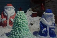 Күчтәнәчләр тутырып.Кулларында боз таягы