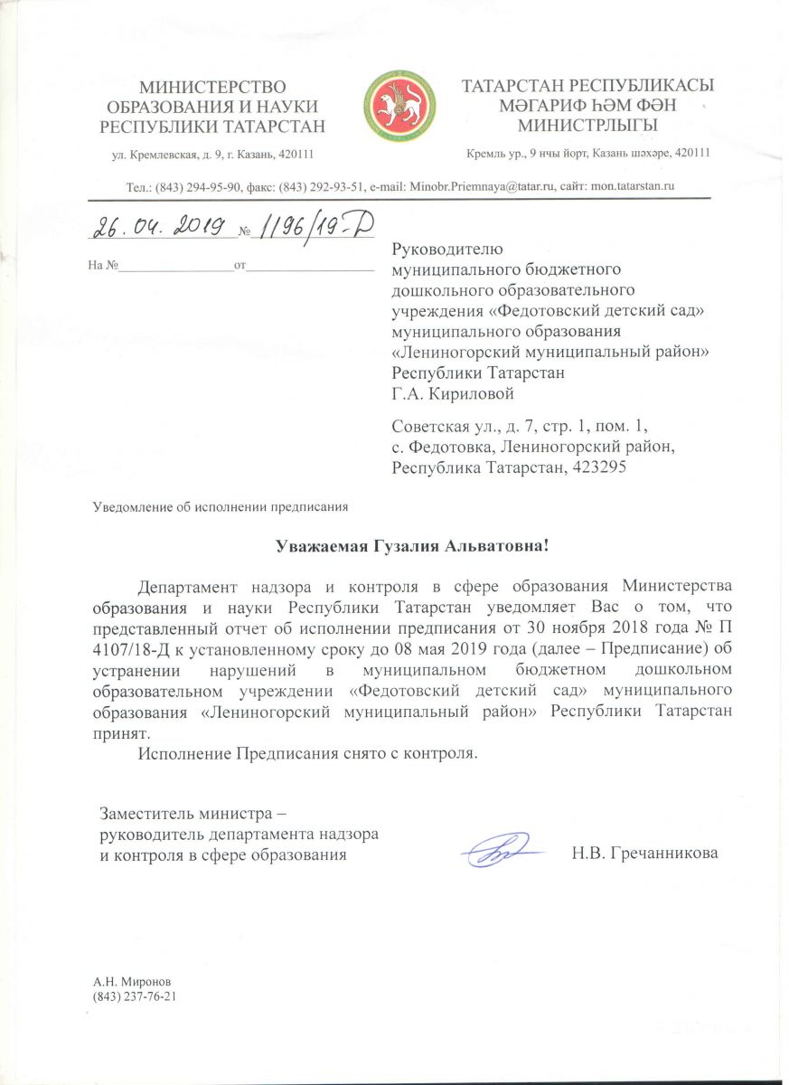 | Короткое название: | МБДОУ "Федотовский детский сад" МО "ЛМР" РТ |