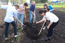 Бүген Җиңү көне уңаеннан 7 – 8 нче сыйныф укучылары укытучылар белән бергә дәресләрдән соң мәктәп бакчасына 12 төп яшь алмагач утырттылар.