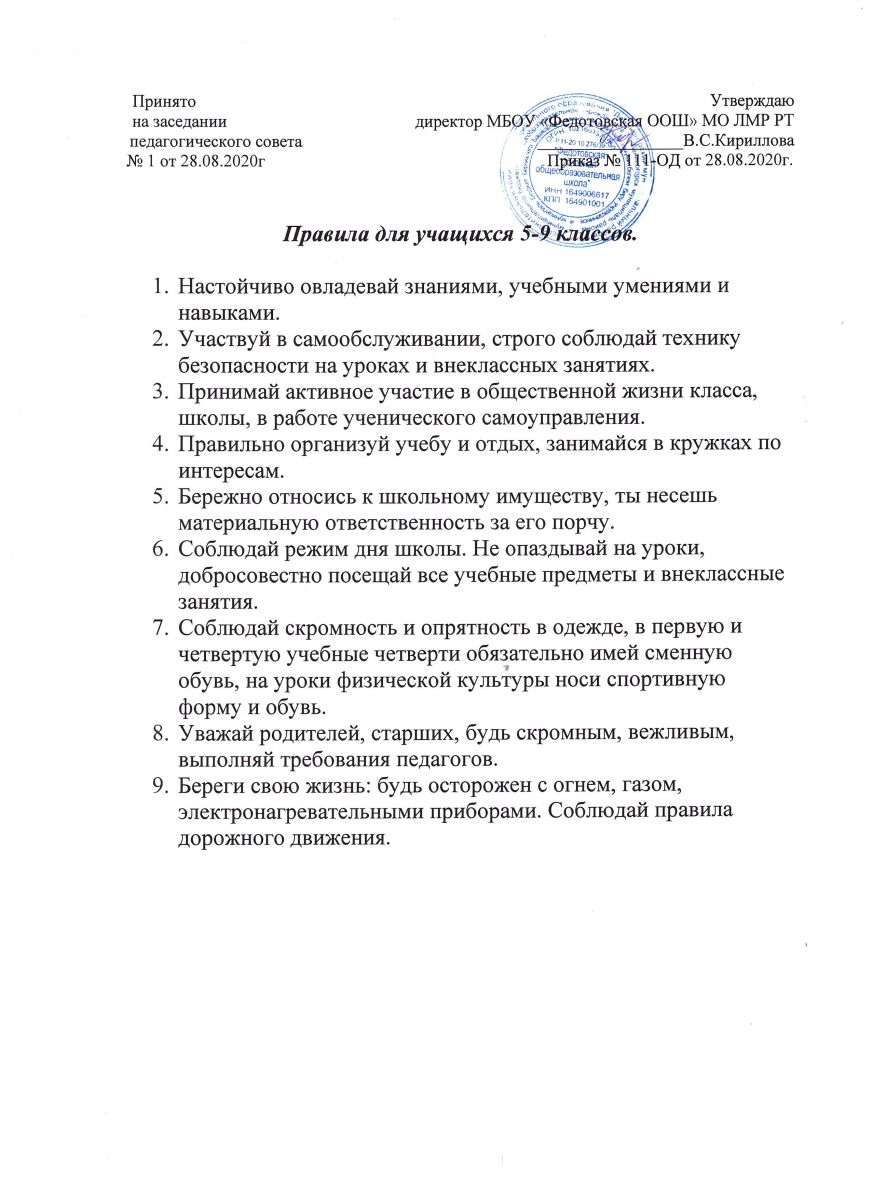 Правила внутреннего распорядка обучающихся / Укучыларның эчке тәртип кагыйдәләре