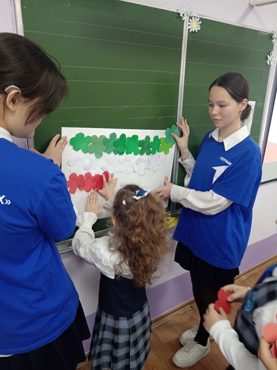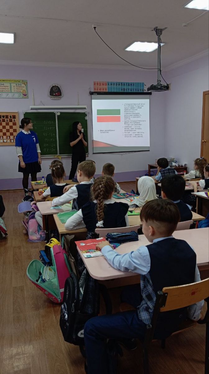 На внеурочной деятельности первоклассники нашей гимназии познакомились с Государственным флагом Республики Татарстан и его значением. Учащиеся узнали о цветах и символах флага, а также о том, какую историю и ценности он олицетворяет. В конце занятия ребята с энтузиазмом выполнили флаг Республики Татарстан. Это занятие помогло первоклассникам не только расширить свои знания о республике, но и развить творческие способности, а также укрепить патриотические чувства. Мы гордимся нашими юными Орлятами России и их стремлением узнавать новое.