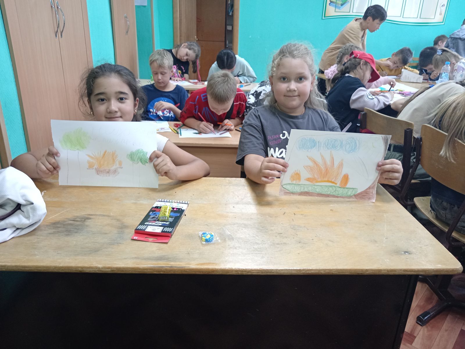 Сегодня в лагере был «День пожарной безопасности». К вниманию ребят был показан мультфильм на темы: «Пожаробезопастность», «Защити лес от пожара». После просмотра было обсуждение данного фильма. Каждый ребенок сделал выводы: нельзя играть спичками, нужно быть внимательным, не разжигать костры на природе. Также прошел конкурс рисунков на тему дня.