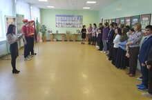 Советник директора школы по воспитанию Насырова Л.И. провела линейку для 8,10,11 классов «Наш герб - наша сила». На данном мероприятии учащиеся познакомились с историей и описанием нашего герба.