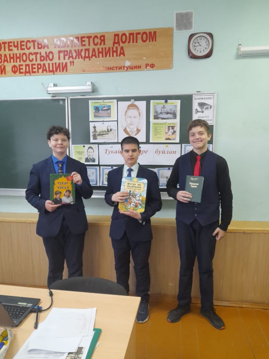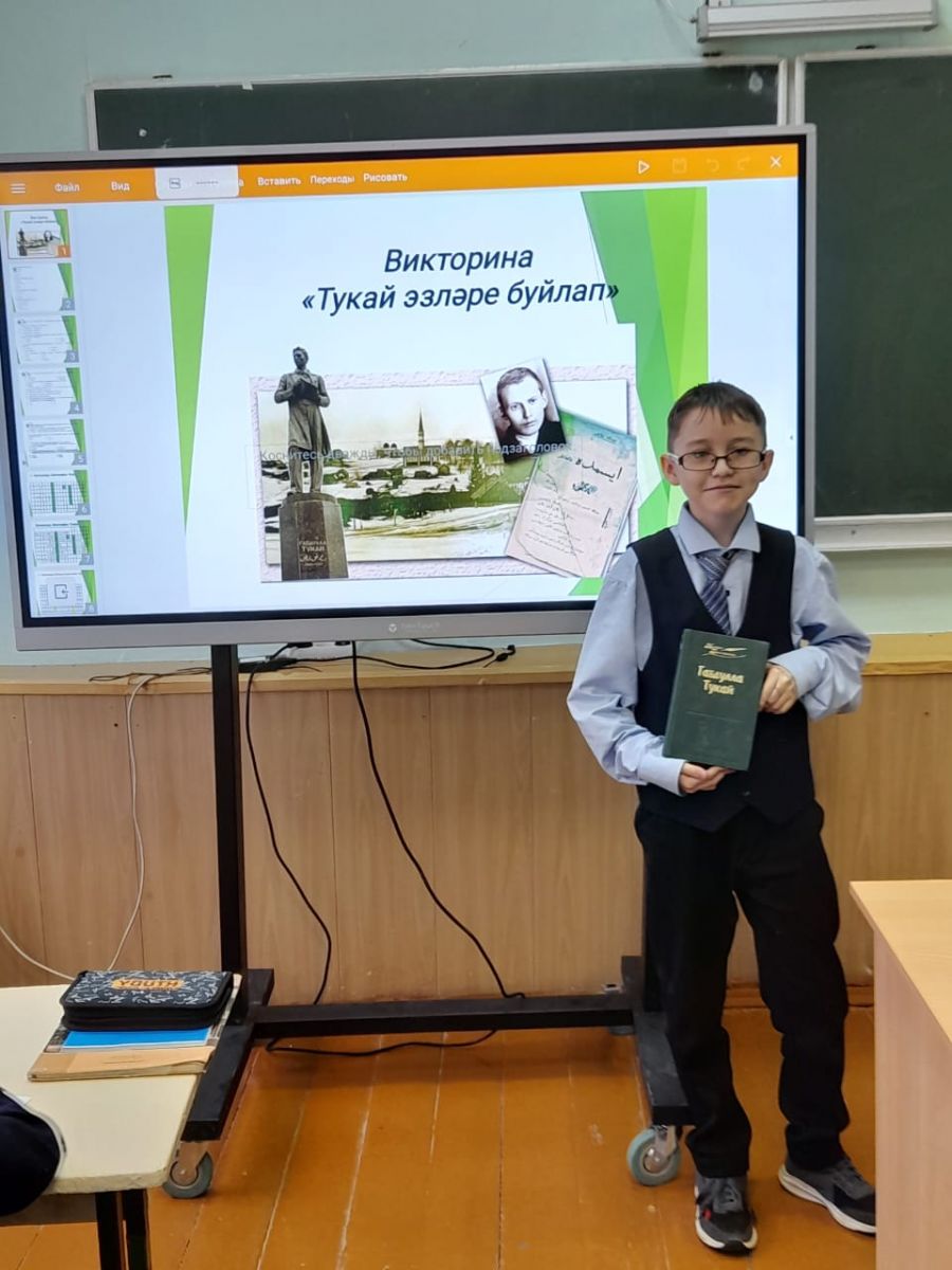Бүген, ягъни 26 нчы апрель көнне, бөтен татар дөньясы бөек шагыйребез Г.Тукайның тууына 137 ел тулуын билгеләп үтте. Шул уңайдан гимназиябездә “Тукай эзләре буйлап” дигән викторина уздырылды. Укучылар Габдулла Тукайның тормыш юлын һәм иҗатын искә төшерделәр, шигырьләрен укыдылар.