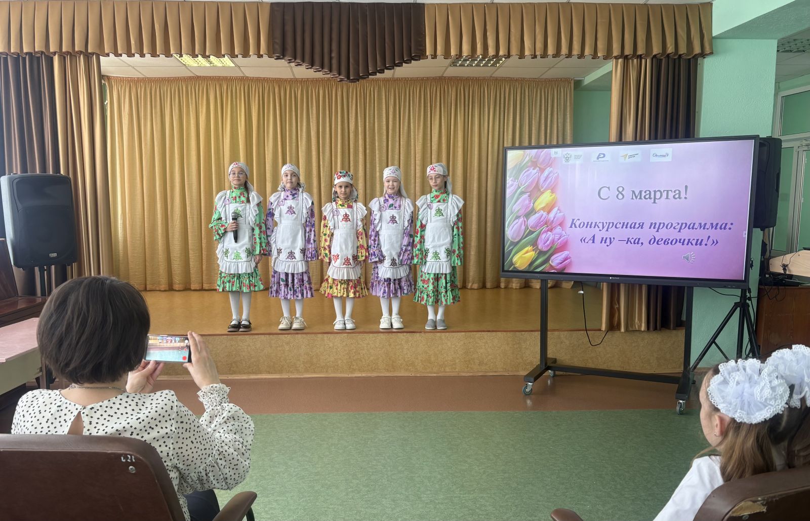 В преддверии Международного женского дня в гимназии с учащимися 3-их классов советник провела весёлый игровой час "А ну-ка, девочки!". В ходе мероприятия команды девочек выполняли интересные задания: составляли букеты, меню блюд, собирали бусы, считали «семейный» бюджет, решали ребусы. Праздник получился интересным и веселым.