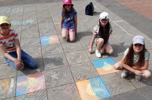 Трудно рисовать на асфальте, но мы пытались справиться с этим заданием. Ребята были готовы часами сидеть с цветными мелками, творя «шедевры». Когда они рисуют, то никого не видят и ничего не слышат вокруг. Настолько увлечены любимым делом.