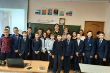 16 февраля в 6 Б классе прошел классный час , посвященный Дню Защитника Отечества, совместно с ветераном боевых действий Айнуром Хасаншиным. Ветеран рассказал о своей службе в рядах Российской армии, ребята задавали интересующие вопросы, в конце встречи ребята сделали фото на память.
