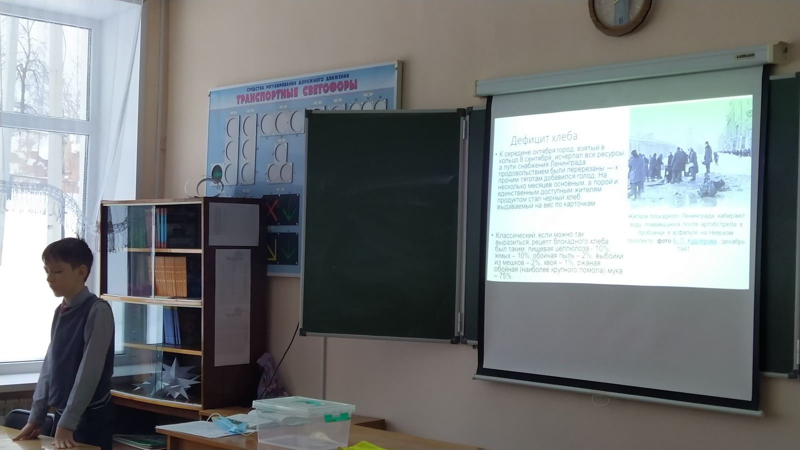 Мужеству жителей Ленинграда, переживших беспрецедентную блокаду миллионного города вражескими захватчиками был посвящен классный час в 5В классе.