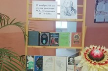 К юбилею писателя в МБОУ «Гимназия № 11» организована книжная выставка, на которой были представлены книги М.В. Ломоносова.