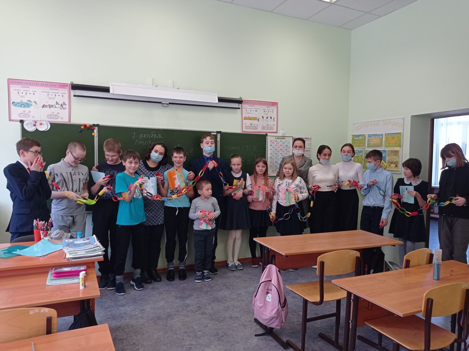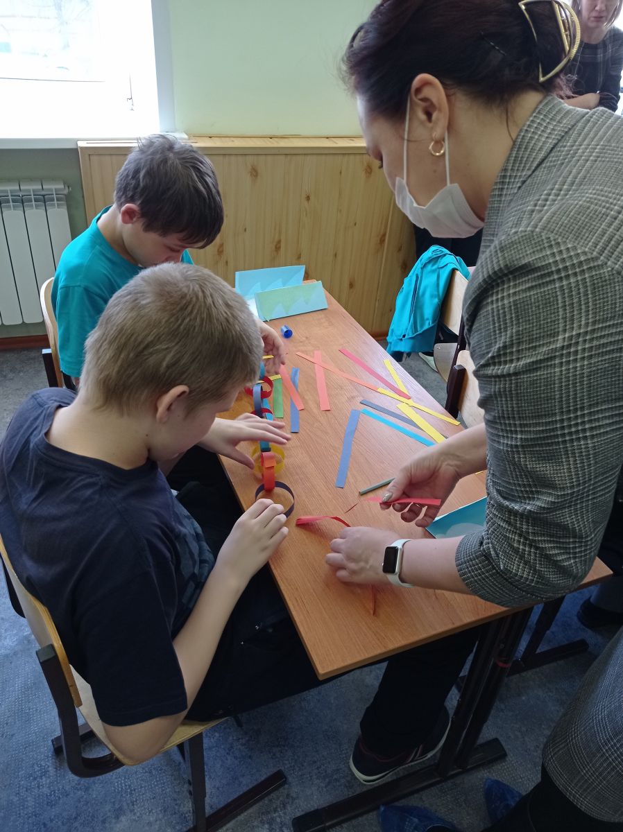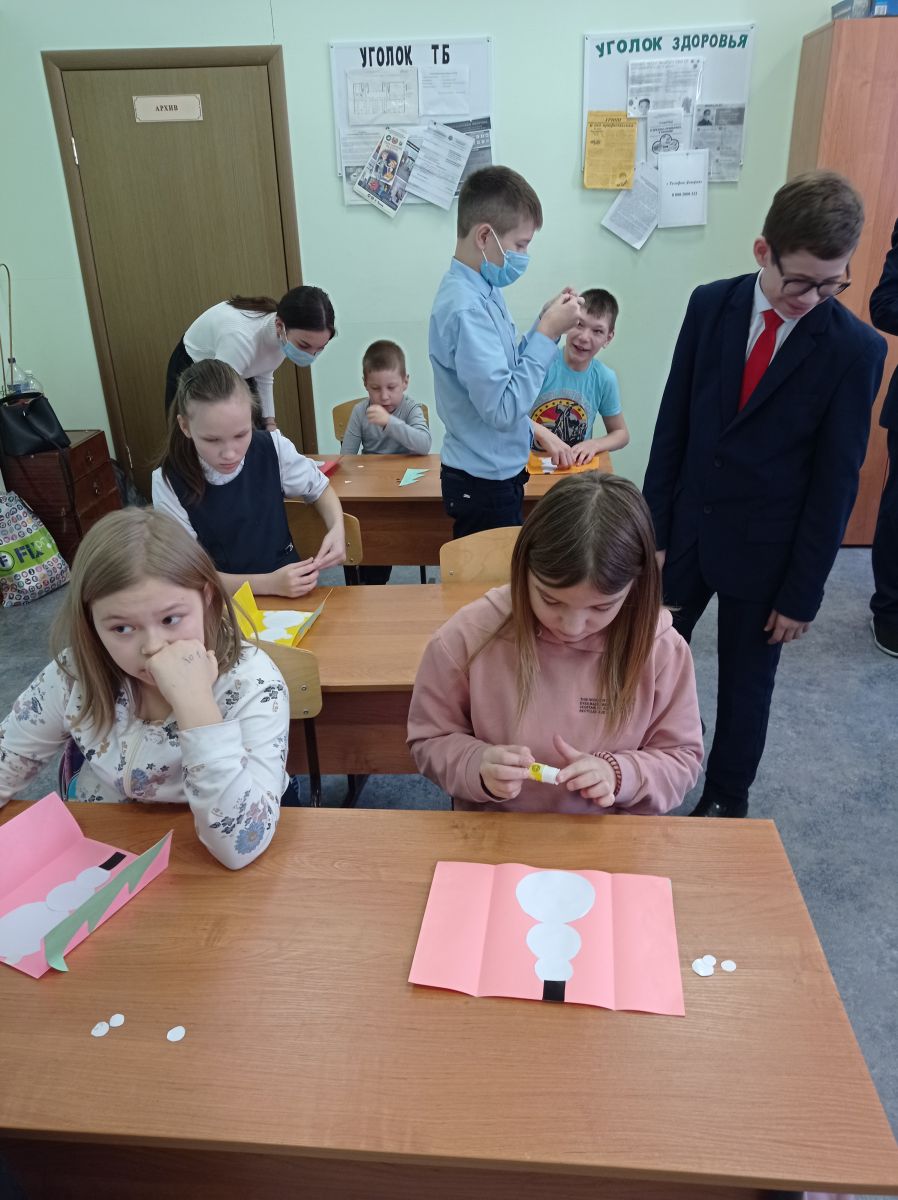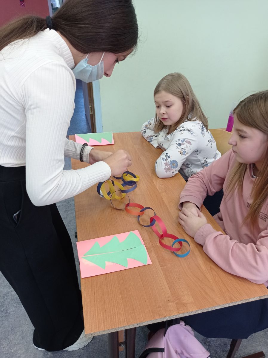 Учащиеся 7 В класс и педагоги Михайлова О.В и Шафигуллина А.Б МБОУ «Гимназия №11 г.Лениногорска», посетили учащихся школы №14. С ребятами изготовили новогоднюю открытку для Деда Мороза и новогоднюю гирлянду. В конце мероприятия ребята получили небольшой сладкий подарок