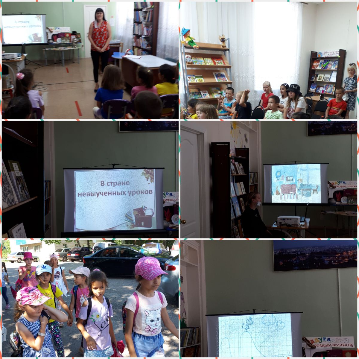 После завтрака ребята направились в детскую библиотеку, где с ними побеседовали о драгоценном времени. И посмотрели мультфильм « В стране не выученных уроков».