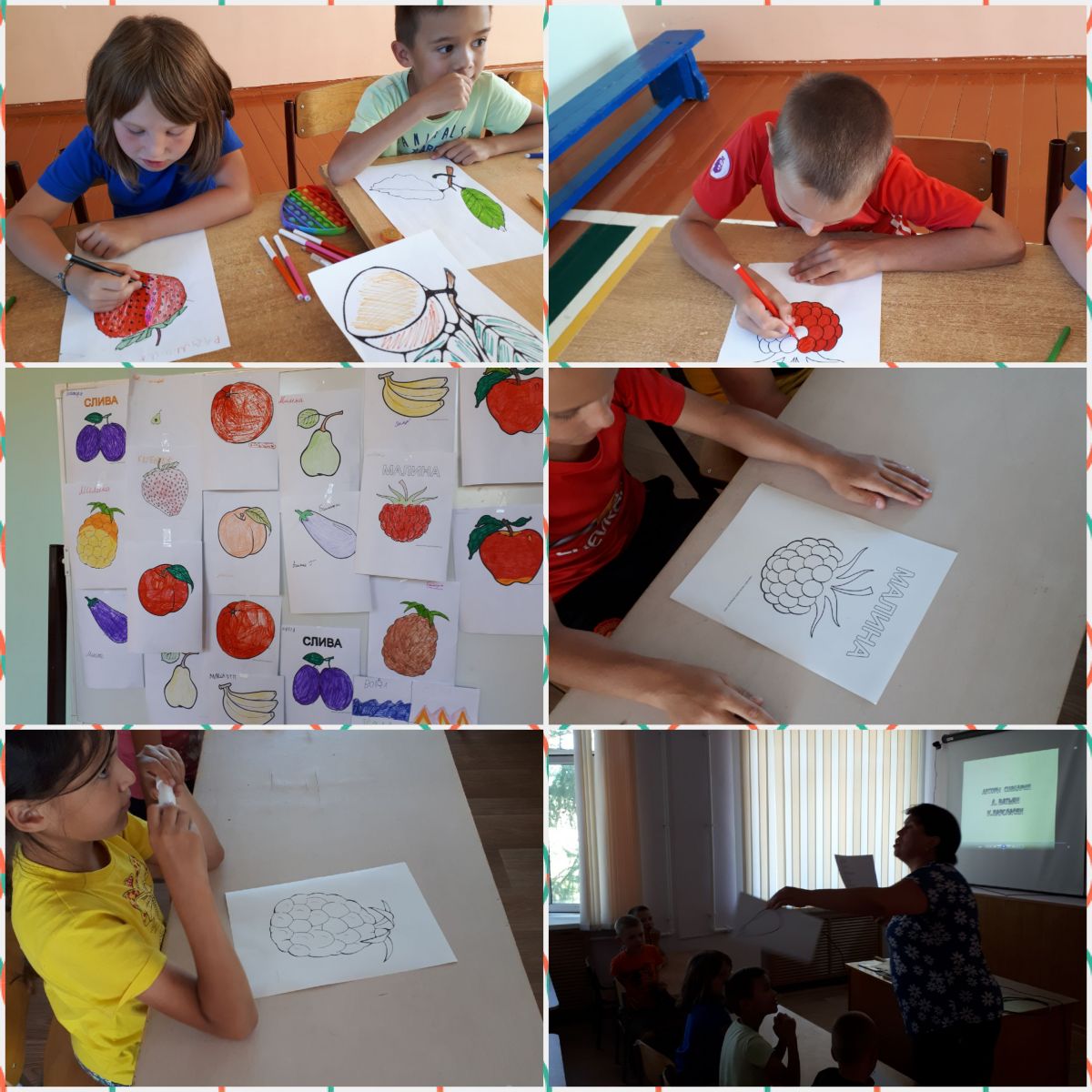 После обеда отдыхающие в продолжение темы «Витамины - мои друзья» отгадывали загадки, а отгадку должны были отгадать и раскрасить. Получилась огромная выставка из витаминов.