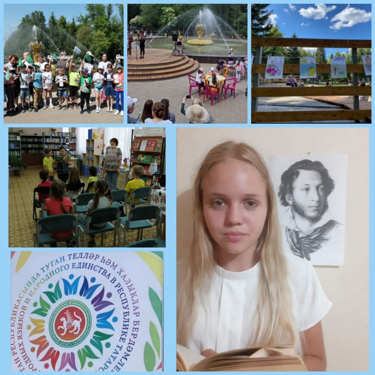 7 июня 2021года в стенах МБОУ «Гимназия №11» в пришкольном лагере «Кояшкай» был проведён Флешмоб "Читаем Пушкина", посвящённый Международному дню Русского языка. Дети с увлечением прочли знакомые всем с детства поэтические строки великого русского поэта, затем они зарисовали иллюстрации к его произведениям.
