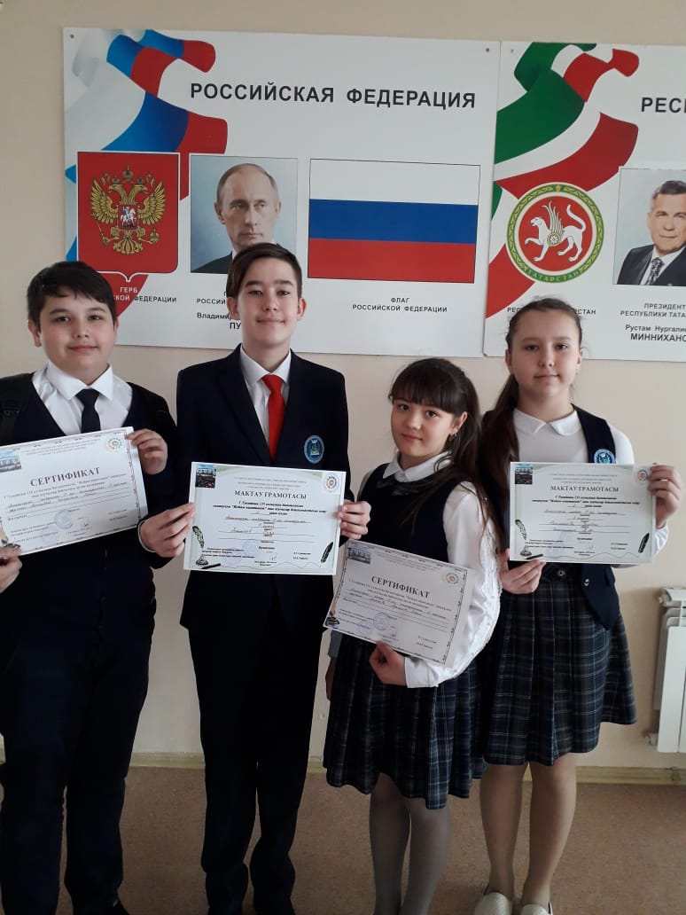 Шигырь бәйгесендә уңышлы чыгыш ясап, 6А класс укучысы Хөсаенова Азалия 3 урынга, 1А класс укучысы Исламова Әминә 2 урынга, 2А класс укучысы Вагыйзов Азамат 1 урынга лаек булдылар.1 урын алучы укучыбыз Вагыйзов Азамат Казанда район данын яклаячак.