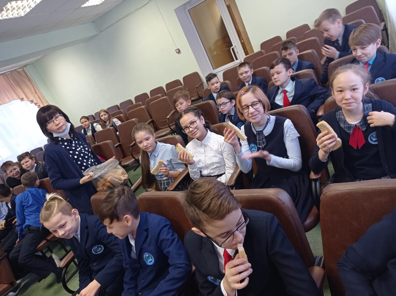 Ребята 5А,5В классов посмотрели документальный фильм «Блокадный Ленинград», приняли участие в беседе. Всероссийская акция прошла раздачей хлеба ребятам , ( вспоминая как это было…)
