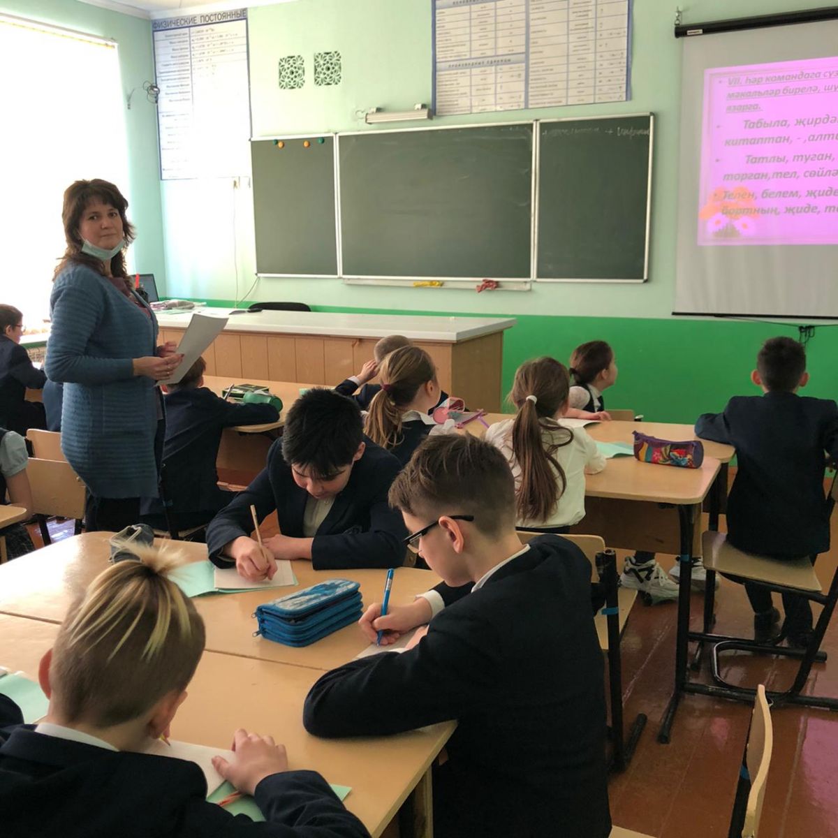 Туган тел айлыгы кысалары нигезендә, укучыларда туган телгә,татар теленә, әдәбиятны тирәнтен өйрәнүгә кызыксыну уяту; белемнәрен тирәнәйтү , иҗади сәләтләрен үстерү; милли үзаң, милли горурлык хисләре тәрбияләү, халкыбызның бай, рухи мирасын барлауга ихтыяҗ тудыру максатында 5 нче А сыйныф укучылары өчен “Туган тел иленә сәяхәт” дип аталган дәрестән тыш чара уздырылды. Укучылар командаларга бүленеп, уеннарда актив катнашып, үз белемнәрен сынадылар. Чарада “Кем күбрәк белә?”, “Тел чарлау”, “Кем тапкыррак”, “Табышмак әйтәм – җавабын тап!”, “Тел шомарткычлар” кебек уеннар уйналды. Сәяхәт ахырында укучылар башкаруында туган телебезгә багышланган шигырьләр тыңланылды. Чара укучылар өчен кызыклы да, файдалы да булды.