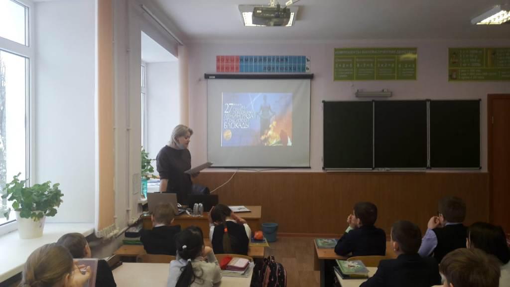 В конце классного часа ученики с классным руководителем почтили память жителей Ленинграда, отстоявших его и не доживших до наших дней, минутой молчания.
