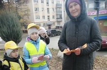 Отряд ЮИД 3В класса дежурил на перекрёстке во время осенних каникул, раздали листовки по ПДД