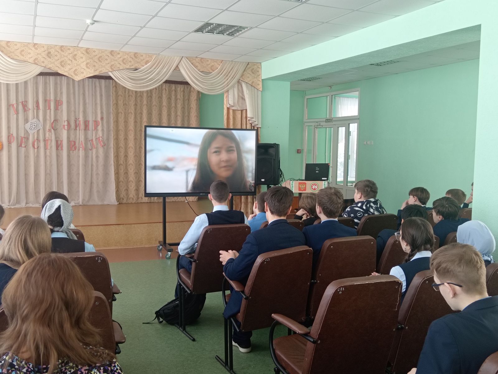 То сердце матери…В гимназию на встречу была приглашена мама участника СВО.. Сания Габдрахмановна Арсланова. Вместе с классным руководителем Лилей Фоатовной Саримовой ученики с большим вниманием выслушали рассказ о детстве сына, учёбе в нашей гимназии, о службе. После рассказа ребята задавали вопросы о службе, о нелегком быте солдата.