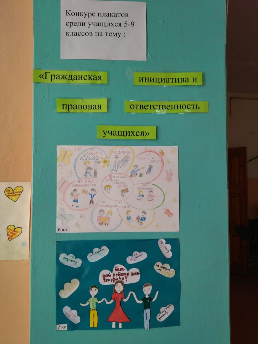 Проведен конкурс плакатов среди учащихся 5-9 классов на тему "Гражданская инициатива и правовая ответственность учащихся" формат рисунка А3.