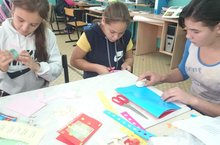 Под руководством учителя ИЗО Сергеевой А.В. идет подготовка ко Дню учителя. Ребята с удовольствием делают своими руками разнообразные открытки и поделки.