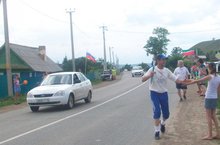 Участники эстафеты "Бег - Мира" пробежали через с.Каркали. 18.06.2014