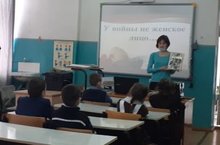 В рамках акции «У войны не женское лицо» библиотекарь провела час мужества «Женщина в годы войны». Ребятам была подготовлена информация о ветеране Великой Отечественной войны Хасаншиной Барии Хасаншовне. Была показана презентация о ее жизни во время войны, во время блокады Ленинграда и жизни в мирное время. О ней написано в книге «Кыз – әбиләр» («Незамужние девушки военных лет») на татарском языке, авторы: И.Шарафиев, Р.Гыйлемханов, издательство «Татарстан яшьләре плюс» - 2001г.- стр.88. Награждена медалью «За доблестный труд в годы войны 1941-1945гг.»