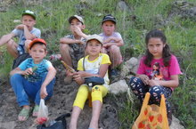 После завтрака дети ушли на прогулку в горы. Затем отдыхали у маленькой речушки, играли в подвижные игры. После обеда играли в «Лото».