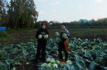 Мәктәп бакчасында көзге уңышны җыю эшләре дәвам итә. Балалар кәбестә уңышын җыеп алдылар.