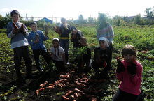 Мәктәп бакчасында көзге эшләр дәвам итә. Бәрәңге, суган, чөгендер һәм кишер уңышы уңышы җыелып бетте.