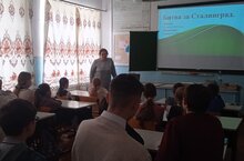 Со времени окончания Великой битвы за Сталинград прошло уже ни одно десятилетие. В живых остались единицы ветеранов, участников тех страшных и одновременно героических событий. И казалось бы, прошло столько лет, не пора ли забыть? Нет! Такое забывать нельзя! В истории есть неписаный закон – всё, что забывается, повторяется вновь. Мы обязаны помнить подвиг наших прадедов, чтить и помнить! В рамках проведения месячника гражданско-патриотической работы, учителҗ истории З.И.Сахапова провела общешкольный Урок Мужества, посвященный 81-летию битвы за Сталинград.