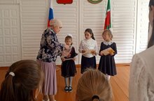 Беренче класс укучыларына мәктәп директоры Татарстан Республикасы рәисе Рөстәм Нургалиевич Миннихановның бүләкләрен тапшырды.