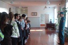Сегодня прошла встреча с пожарным.Он провел инструктаж с персоналом школы и детьми.