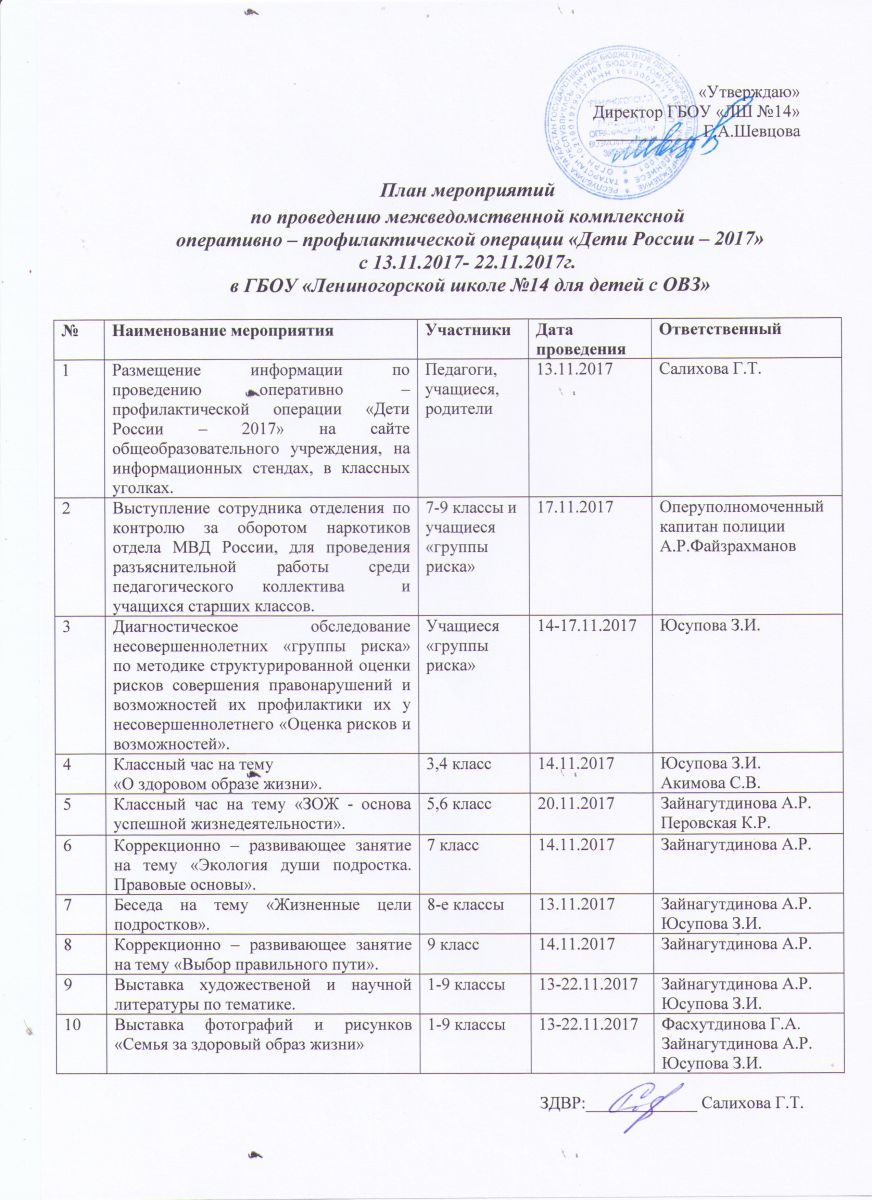 отчет о проведенных мероприятиях, в рамках оперативно-профилактической операции Дети России 2017