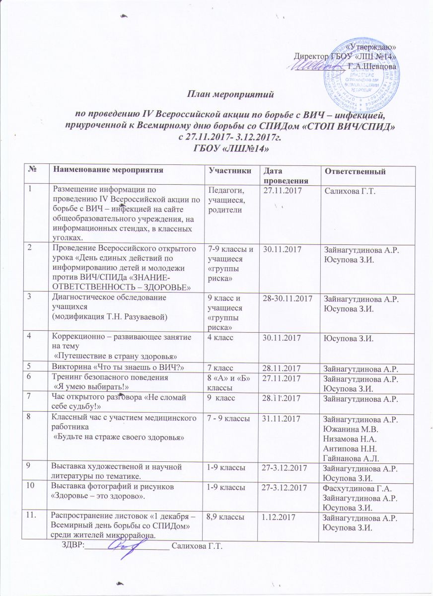 С 27.11.17 по 3.12.17 года в нашей школе были проведены мероприятия, посвященные Всемирному дню памяти жертв СПИДа, профилактики Вич-инфекции. Психологами был разработан план мероприятий.