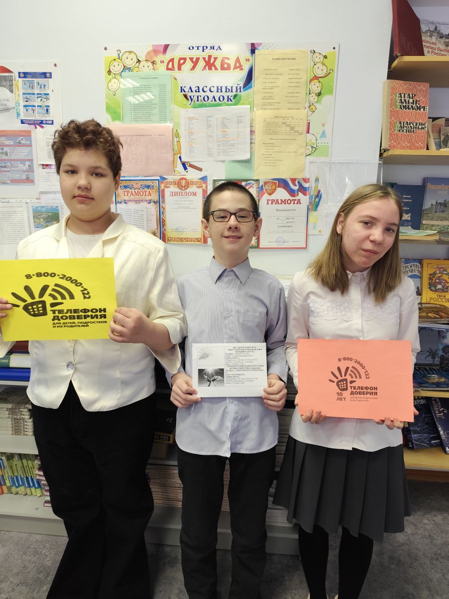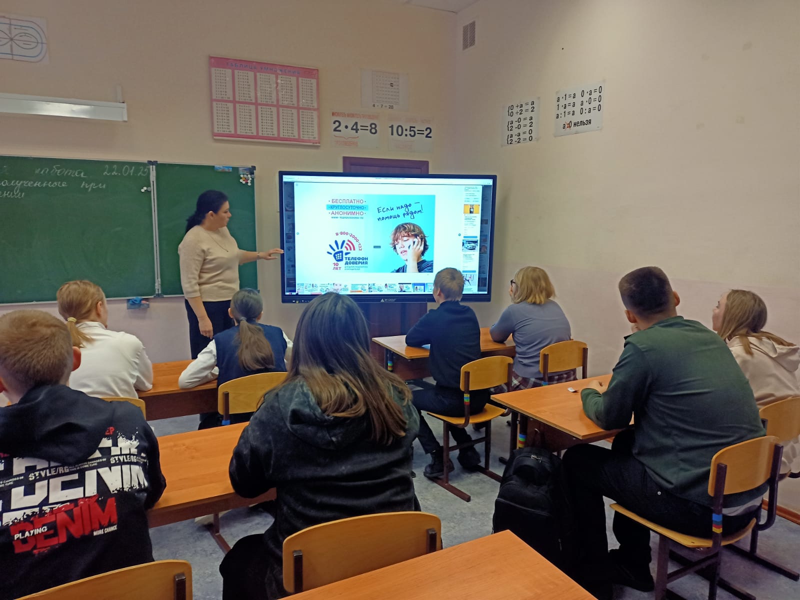 В рамках Недели информирования о детском телефоне доверия для обучающихся 8 класса была проведена беседа: «Мы говорим телефону доверия «Да!»», направленная на популяризацию Детского телефона доверия как службы экстренной психологической помощи. Во время беседы Фасхутдинова Г.А. ребятам рассказала, что существуют особенные цифры – цифры мира, добра и примирения – 8 800 2000 122, что позвонив по этому бесплатному номеру, можно поделиться своими проблемами и неприятностями в любое время суток. Специалисты телефона доверия внимательно выслушают и окажут посильную помощь. Завершающим этапом тематической беседы был просмотр фильма «Телефон доверия».