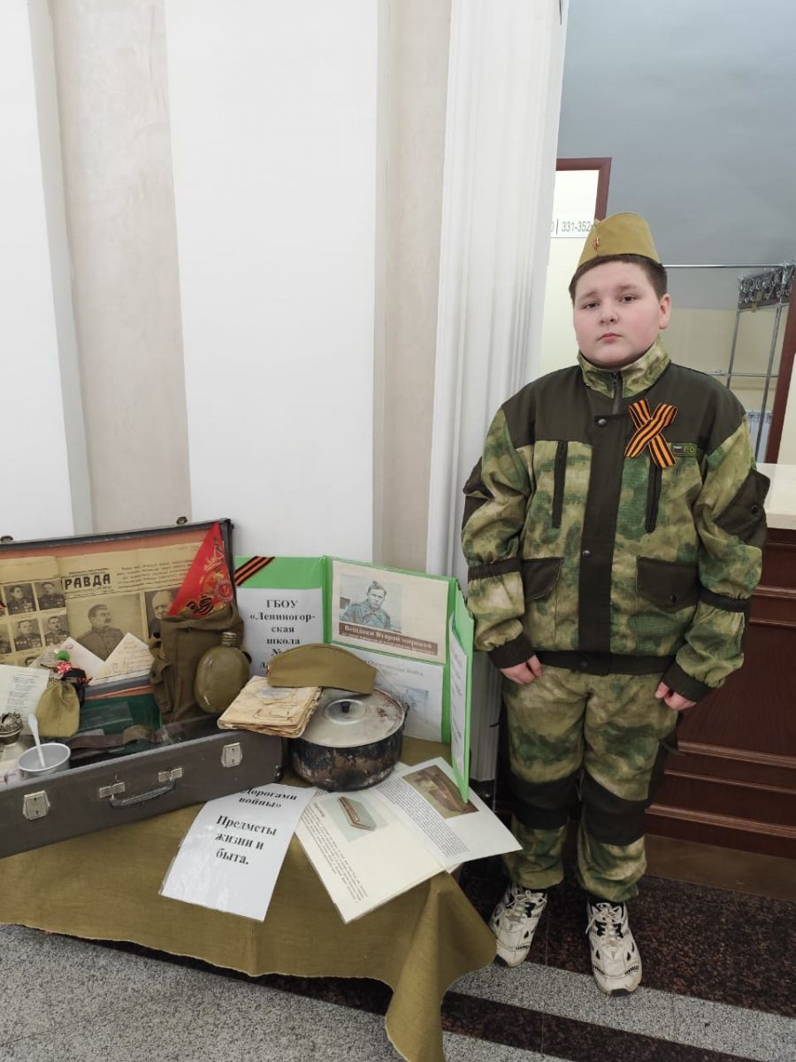 Он принес экспонаты в школьный музей, одежду бойца, флаги своей части, а так же газету Лениногорские вести, где напечата статья Э.Гареевой о нем.