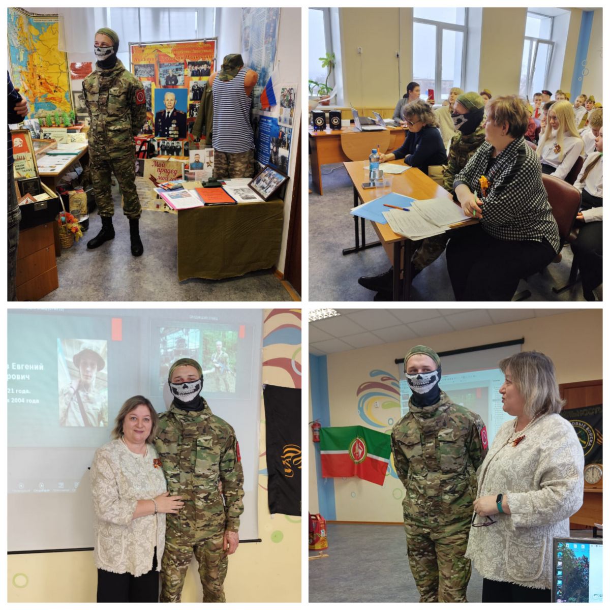 Выпускник нашей школы участник СВО, мотострелок из штурмовой роты с позывным "Пижон" посетил школьное мероприятие, посвященное Году Защитника Отечества.