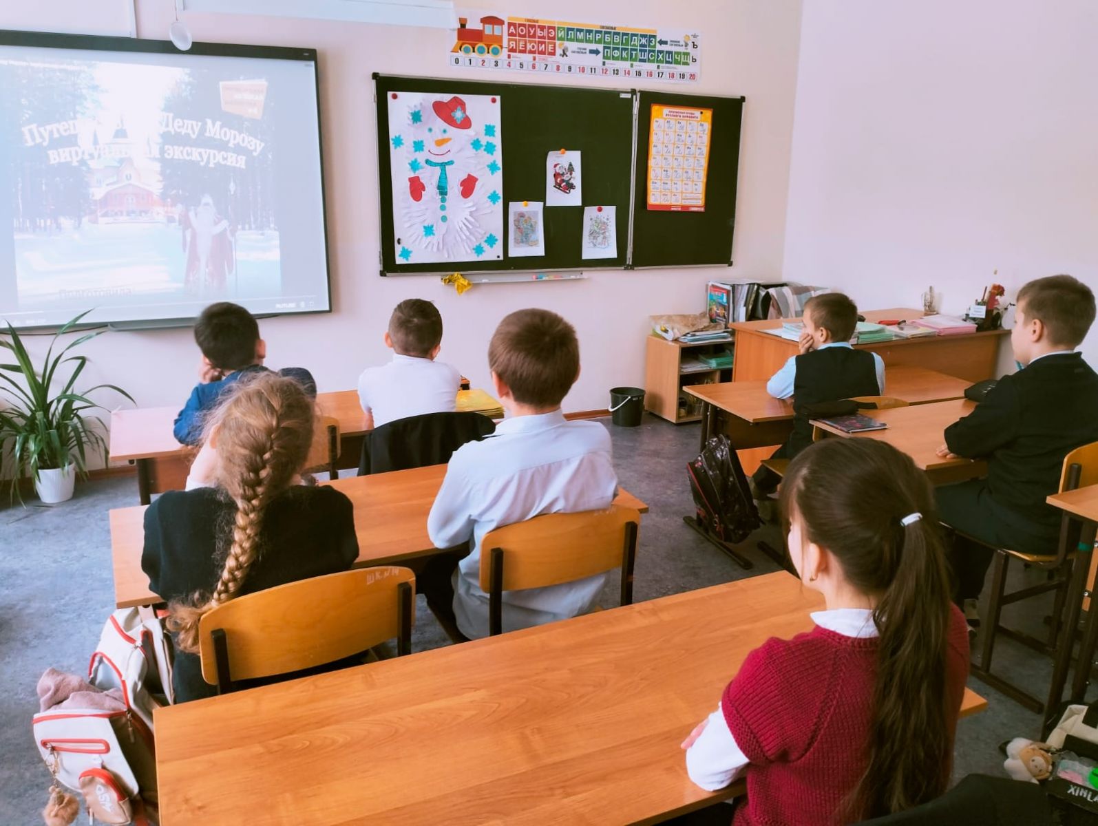 В преддверии Нового года учащиеся 4 класса совместно с классным руководителем М.Н.Булычевой совершили увлекательную виртуальную экскурсию в Великий Устюг к Деду Морозу.